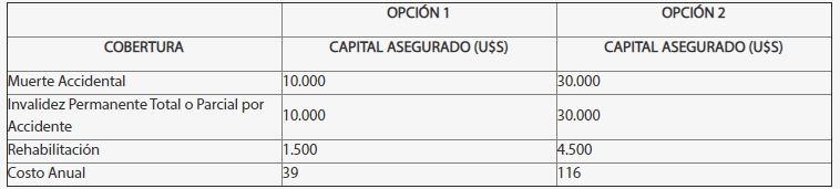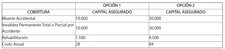 La cobertura principal, muerte accidental puede ser complementada con las siguientes coberturas adicionales: