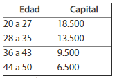 El capital se determina en función de rangos de edad y tipo de cobertura: